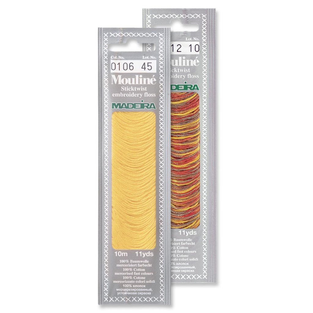 Tyto vyšívací příze 10 m jsou specifické tím, že v jednom vlákně obsahují šest nitek, které jdou od sebe snadno dělit. Je tedy možné vyšívat nejen celým vláknem, tedy všemi šesti nitkami, ale vyšívací návlek můžeme uzpůsobit vyšívací látce a vyšívat jen dvěmi nebo třemi nitkami.