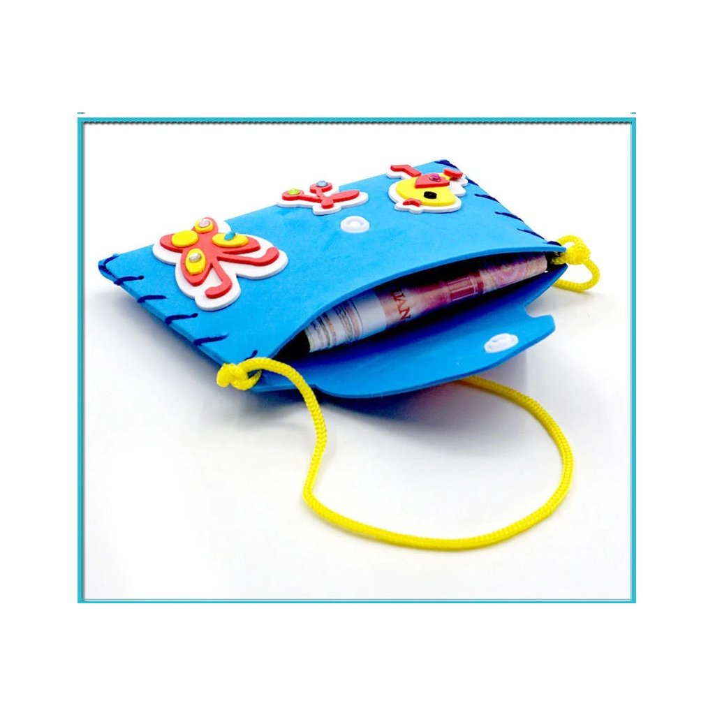 Sada na ušití dětské peněženky, kabelky nebo pouzdra. Sada s jehlou a vzory v podobě barevného filcu, knoflíčků, filcových barevných obrázků, plastové jehly a předlohy. Dětské fantazii se meze nekladou... Na výběr mnoho barevných vzorů pro kluky i holky.